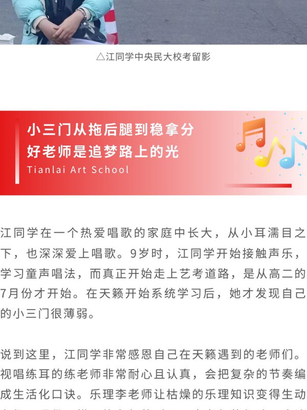 天籁梦想星 | 天籁25届中央民族大学录取学霸江同学:关关难过关关过 前路漫漫亦灿灿!