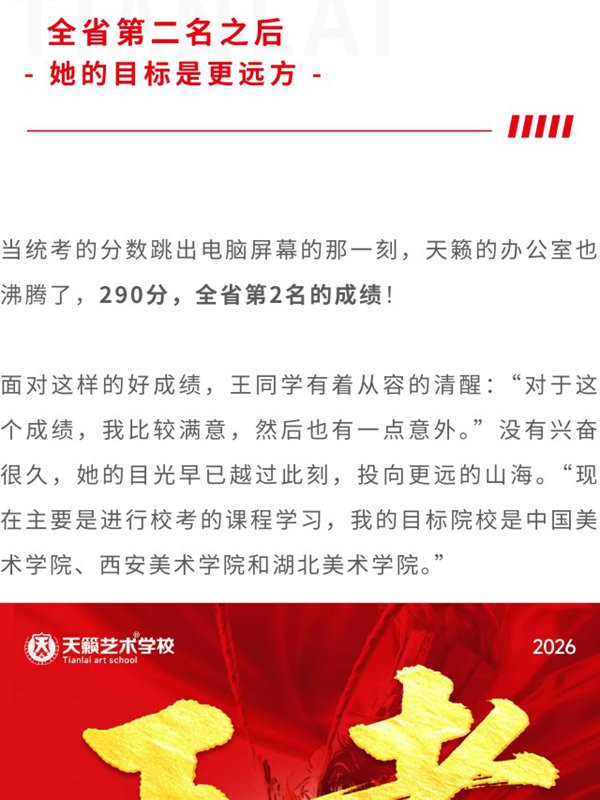 天籁梦想星 | 天籁2026届河南美术统考第2名王同学:奋斗中思考 热爱中坚持 你的努力终将绽放!