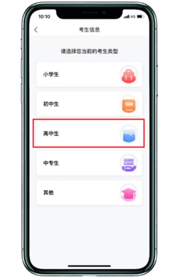 第二步:注册成功后,点击“完善信息”跳转至以下页面,选择“高中生”,填写个人基本信息。