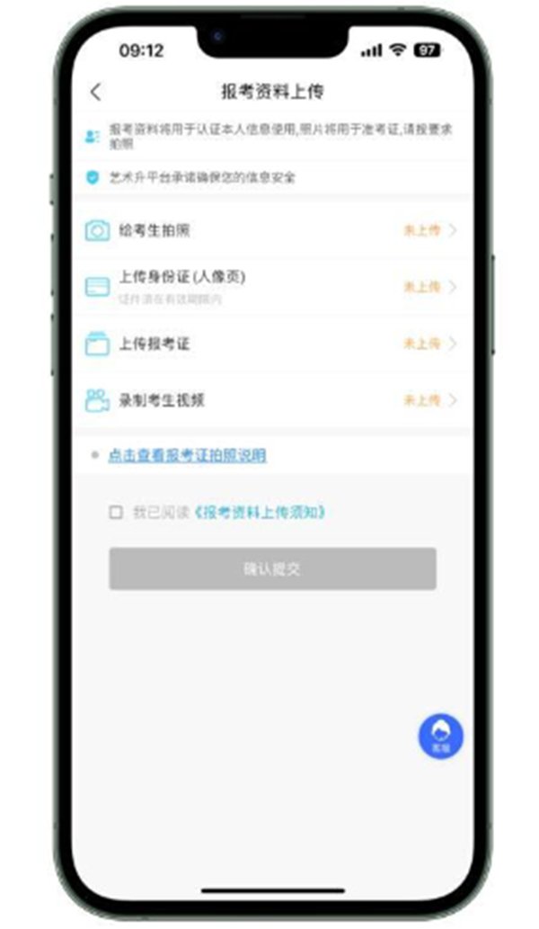 第五步:报名缴费后考生须在24小时内登录艺术升手机APP上传报考资料,包含: