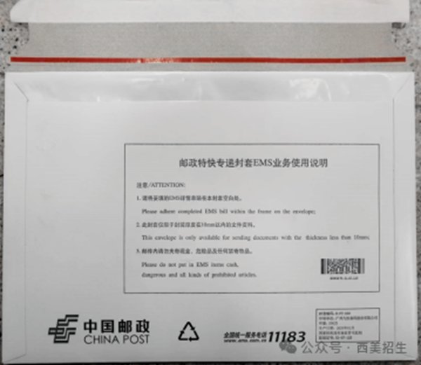 (我校邮寄信息单粘贴于EMS信封正面)