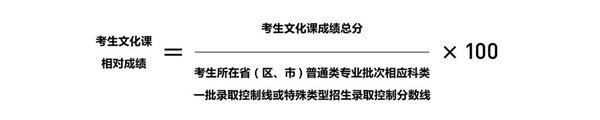 高考综合改革省(区、市)的考生文化课相对成绩使用相应科类特殊类型招生录取控制分数线进行计算。西藏、新疆考生高考文化课相对成绩使用普通本科一批相应科类录取控制分数线进行计算。高考文化课相对成绩四舍五入保留至小数点后三位。